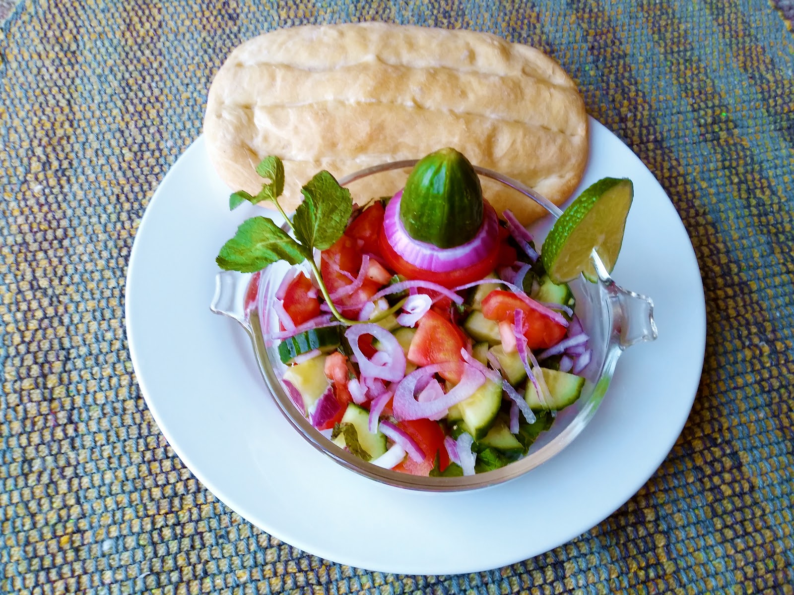 Omani Salad is very similar to an Arabic salad with cucumber, tomatoes, onion, parsley and mint.
